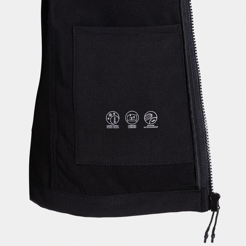 Вона має регульований капюшон зі стопорами, еластичні регулювання на манжетах та подолу, а також три кишені на блискавці та бігунком для швидкого доступу.