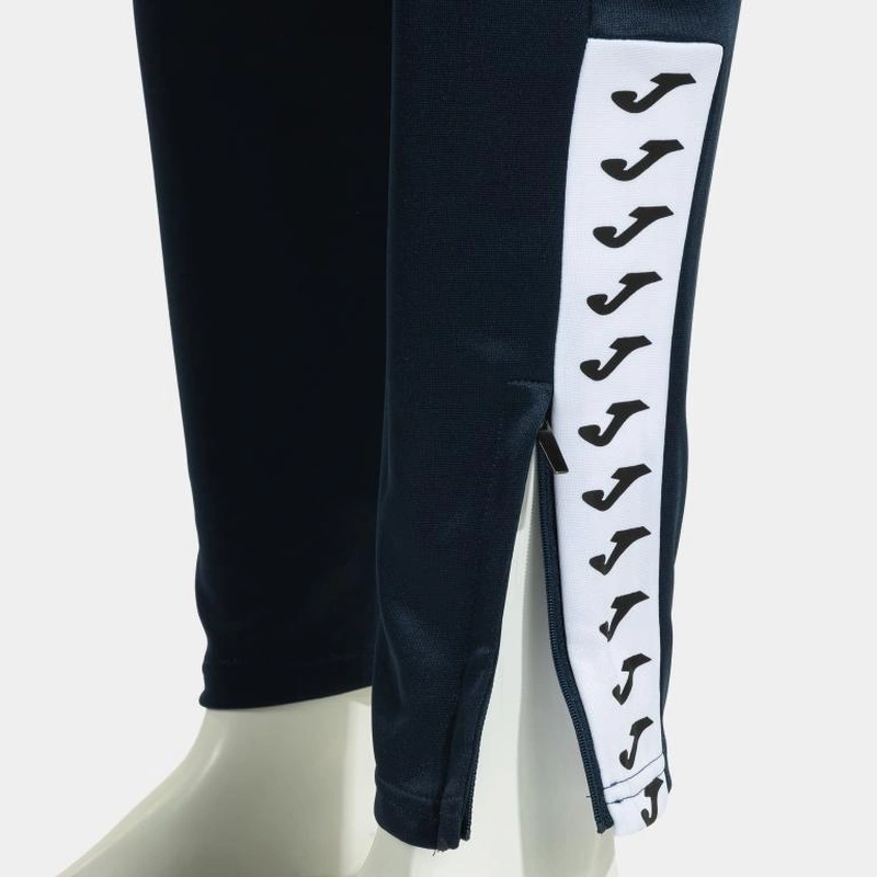 The long trousers include a double adjustment system with an elastic waistband and inner drawstrings, ensuring an adaptable fit. The bottom openings with zippers facilitate adaptability and ventilation, and the zip pockets ensure the storage of belongings. Additionally, the woven band on the sides of the legs reinforces the sporty design of the set.