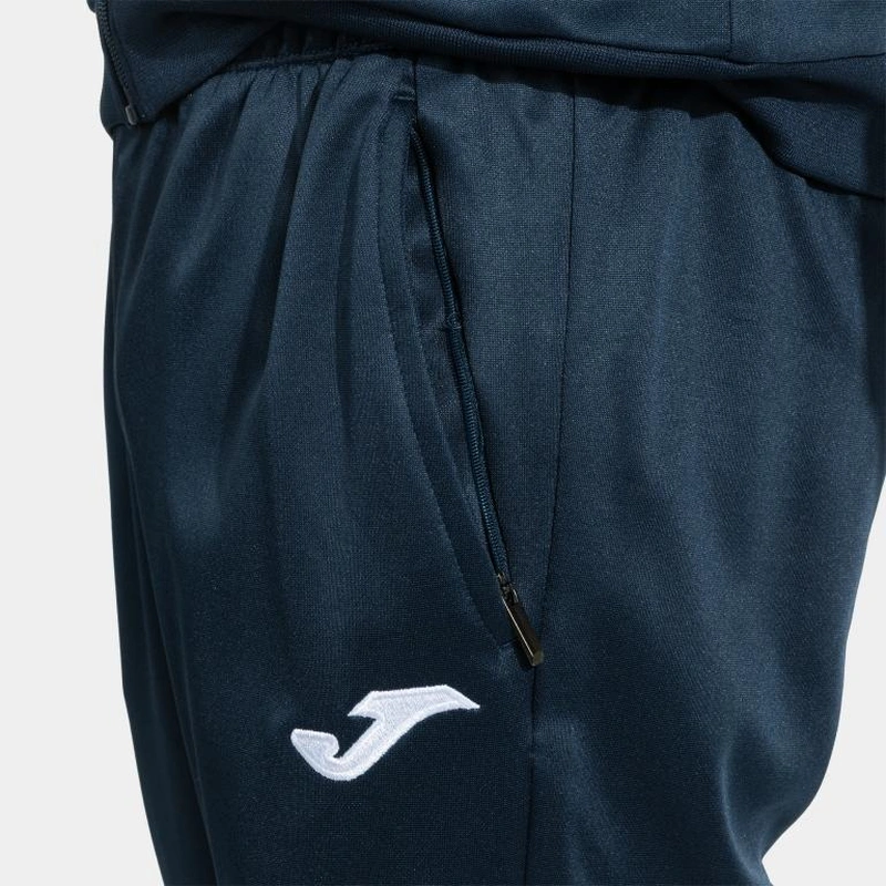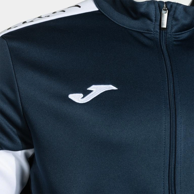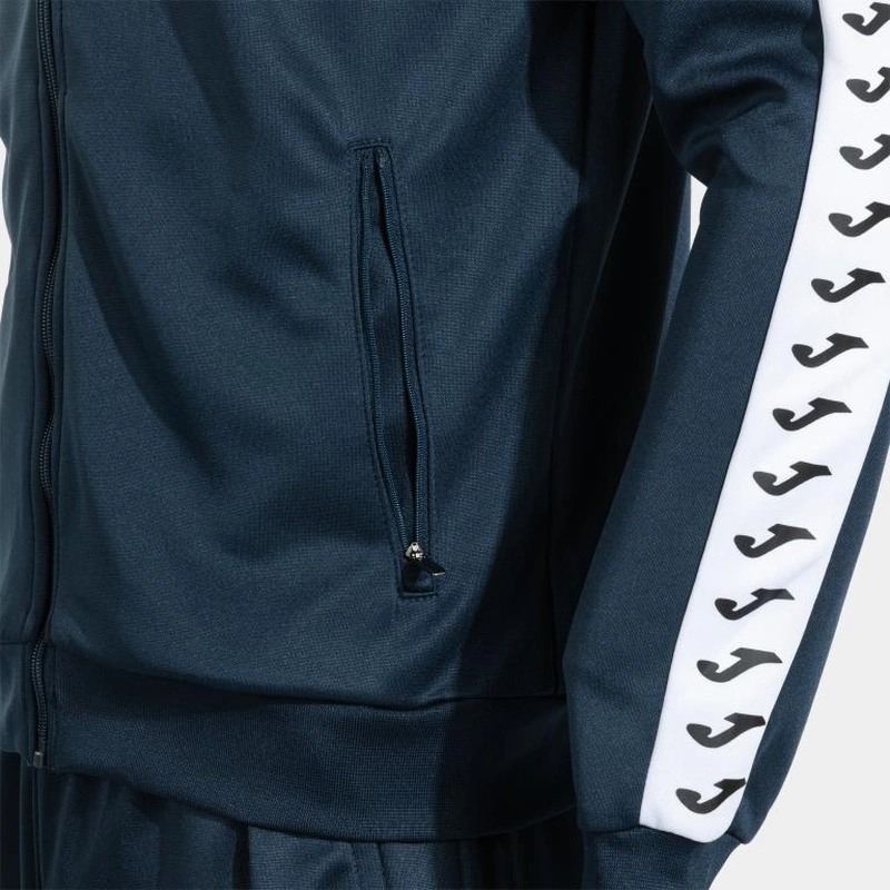 The hoodless sweatshirt features a full zipper for easy adjustment. The ribbed cuffs and hem provide a secure and comfortable fit, while the zip pockets are ideal for securely storing items. The garment stands out for the Joma logo band woven on the sleeves, adding a distinctive and elegant touch.