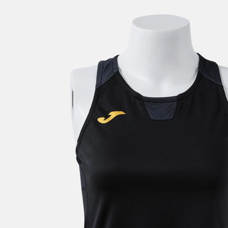 It features a round neckline in base fabric and a racerback for greater freedom of movement.
