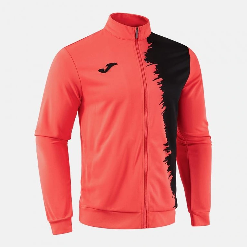 It features a full zip closure and ribbed adjustments at the waist and cuffs. Equipped with non-zippered pockets for carrying small objects.