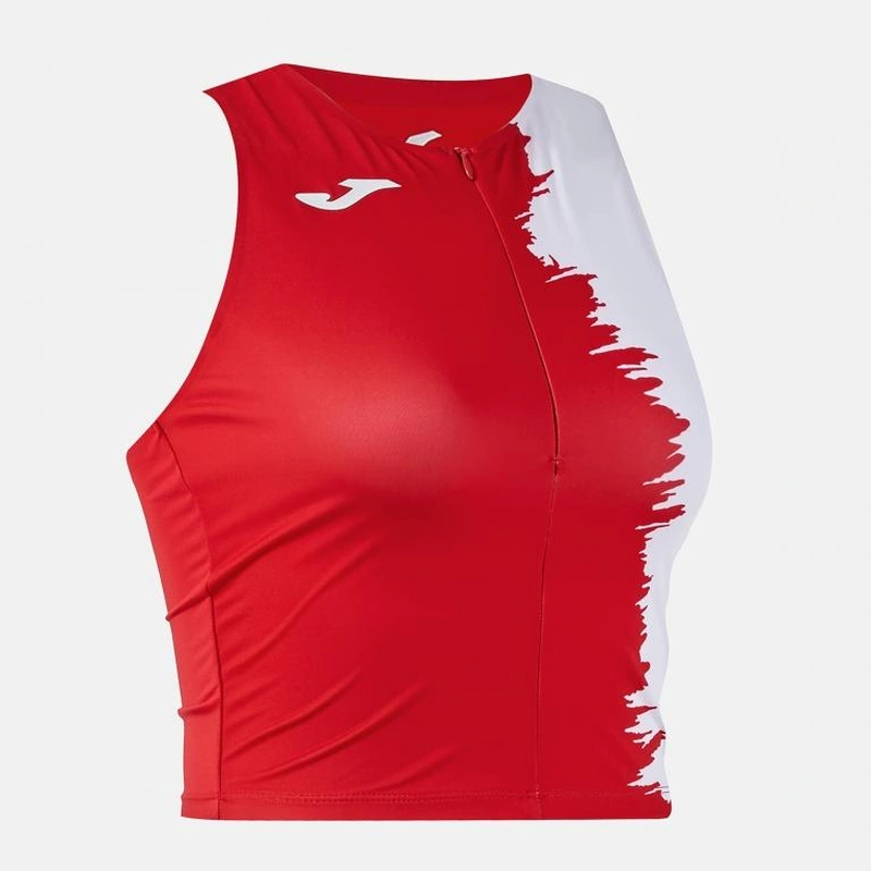 The top features a round neck, half zip closure, and racerback design to optimize freedom of movement. Laser-cut finishes eliminate friction areas, provide high comfort, and maintain lightness.