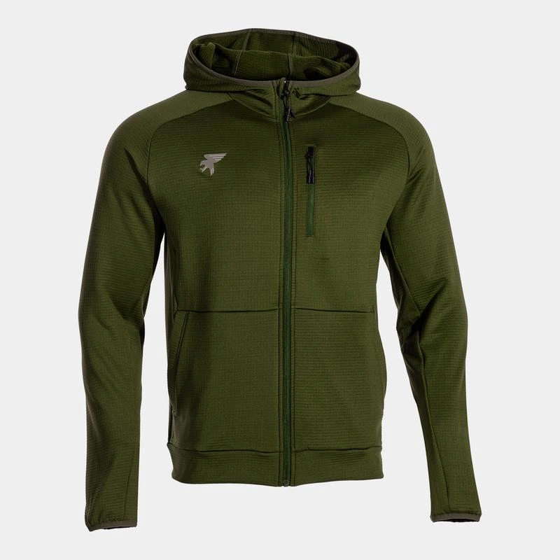 Features a zipper closure and puller, hood, elastic cuffs, and raglan sleeves improving freedom of movement. Features three pockets: two front ones and an extra one on the chest with a zipper closure. In them, small objects can be stored and transported.