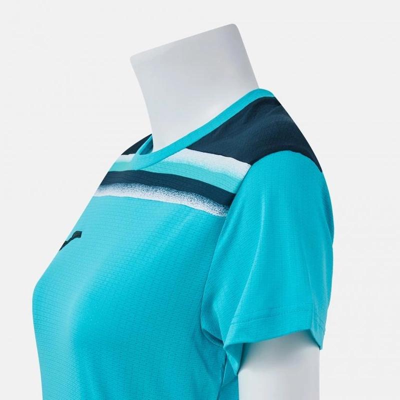 Short-sleeved women's t-shirt. This technical t-shirt is intended for competition and can be used in different sports disciplines. Its high-quality fabric allows for comfortable sweating and achieving maximum performance during sports practice.