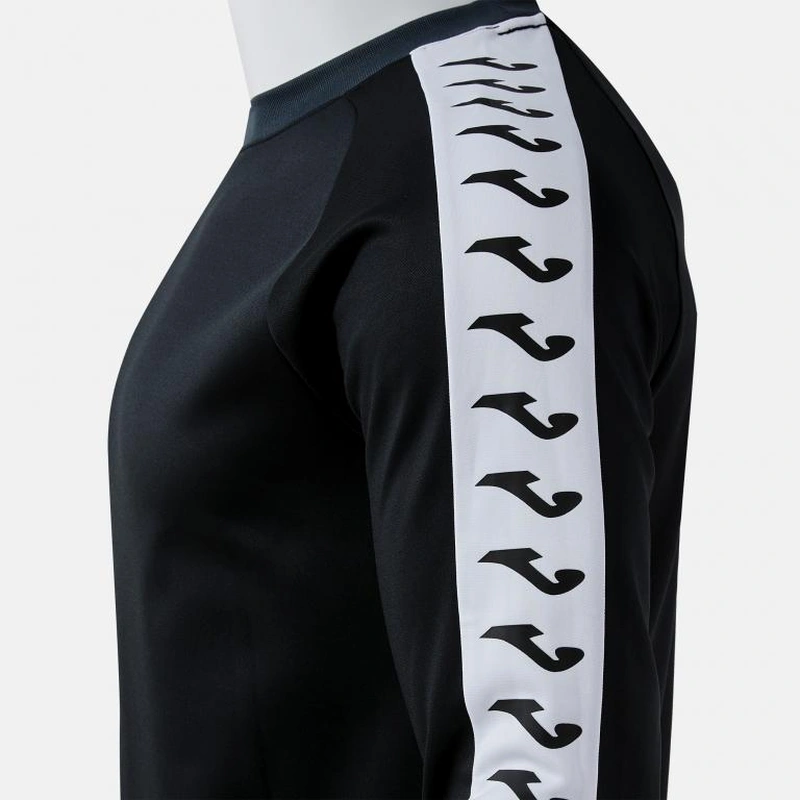 The design includes a round neck, ribbed cuffs and waist, which provide a secure and comfortable fit.