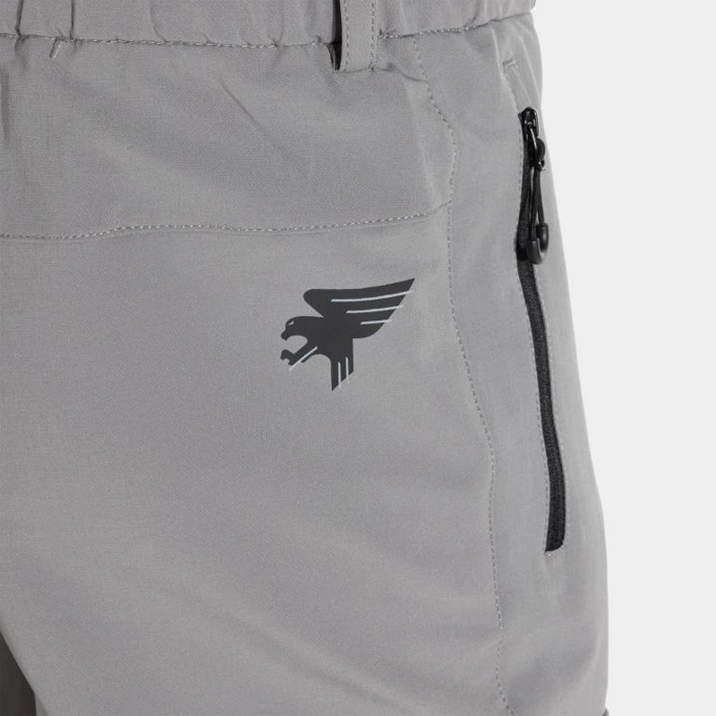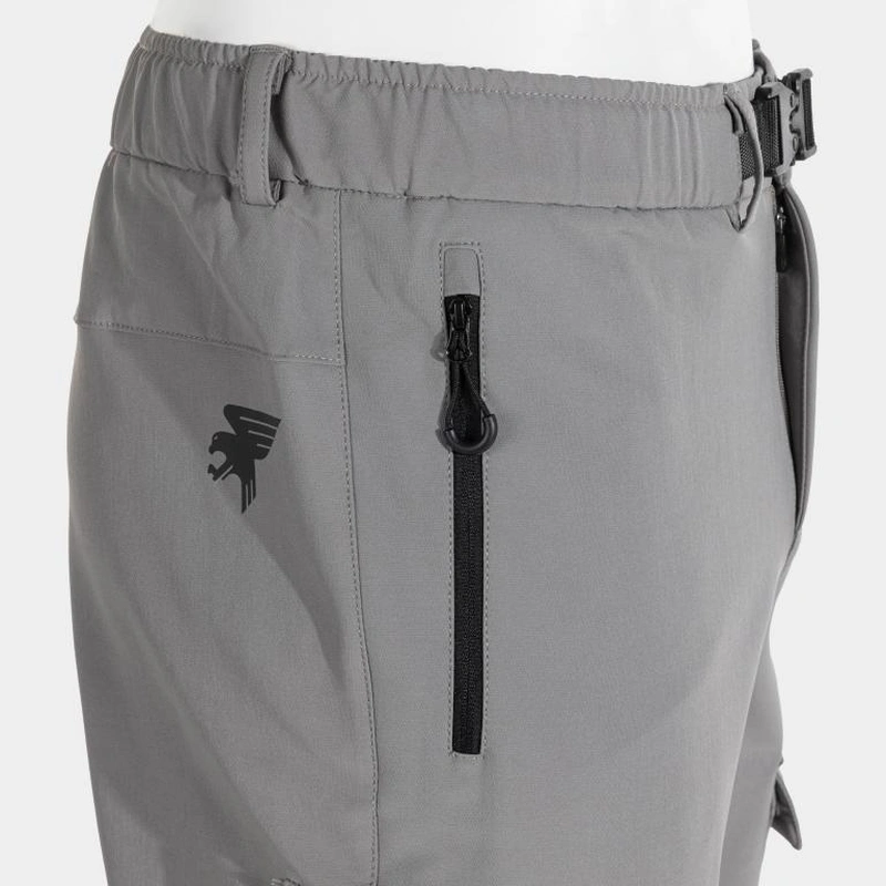 Має регульований еластичний пояс з ременем та швидкознімною пряжкою. Оснащені двома бічними кишенями на блискавці та язичком для підтягування, а також двома карго кишенями на липучках.