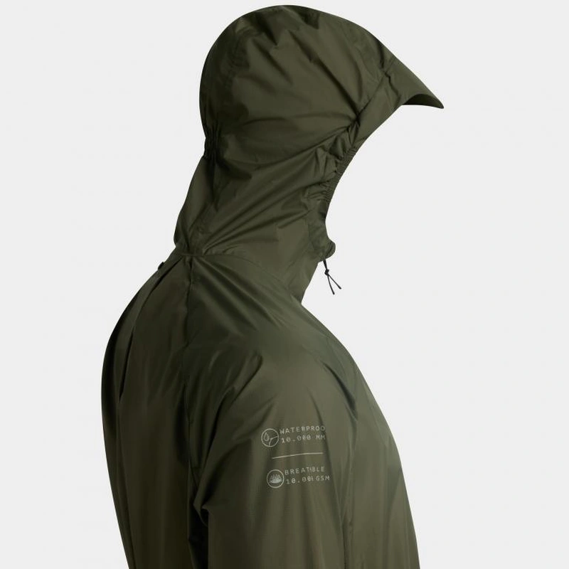 Дощова куртка для бігу по пересіченій місцевості. Розроблена для найскладніших умов у горах та на стежках. Високоякісний продукт, що забезпечує водонепроникність 10 000 мм та повітропроникність 10K, зберігаючи бігуна сухим зовні та комфортним всередині. Легка та ергономічно регульована, вона ідеально підходить для інтенсивних занять на свіжому повітрі під дощем.