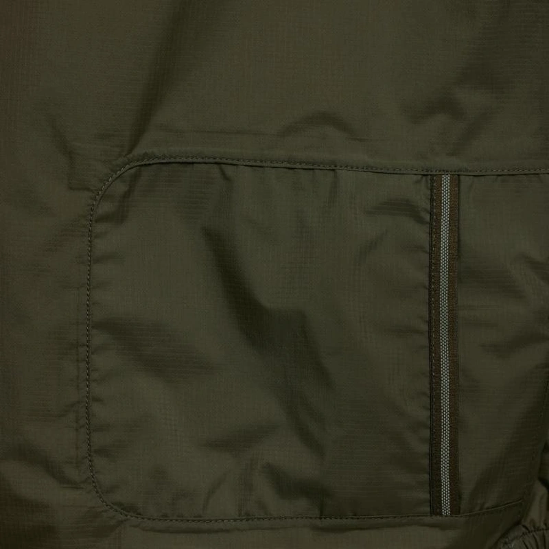 Виготовлена з надлегкої, ультрастійкої (ріпстоп) та водонепроникної тканини, яка відштовхує воду. Високий рівень водонепроникності (10 000 мм), стійка до тривалого, сильного дощу та сльоти, а також посилена водонепроникними швами. Вона також дихаюча 10K. Цей одяг дозволяє виводити 10 000 грамів вологи на квадратний метр протягом 24 годин.