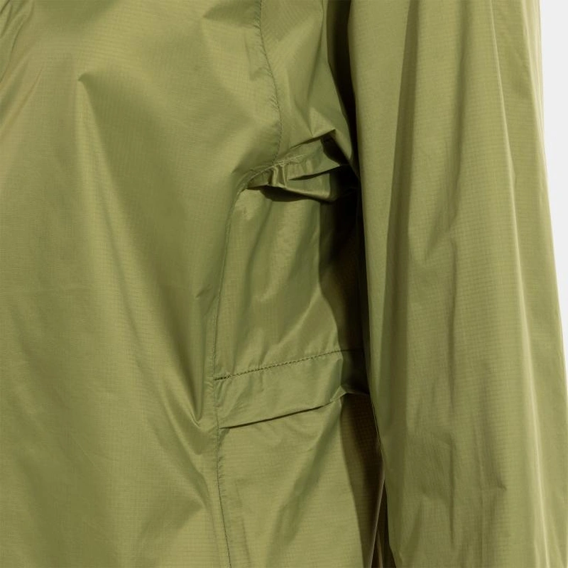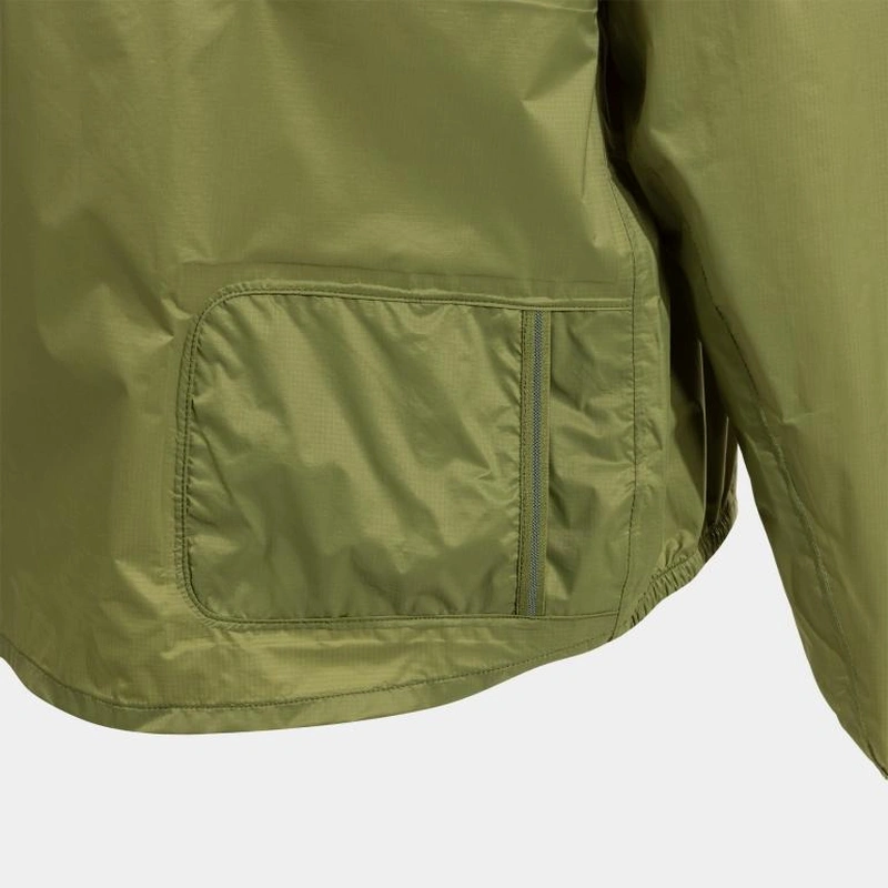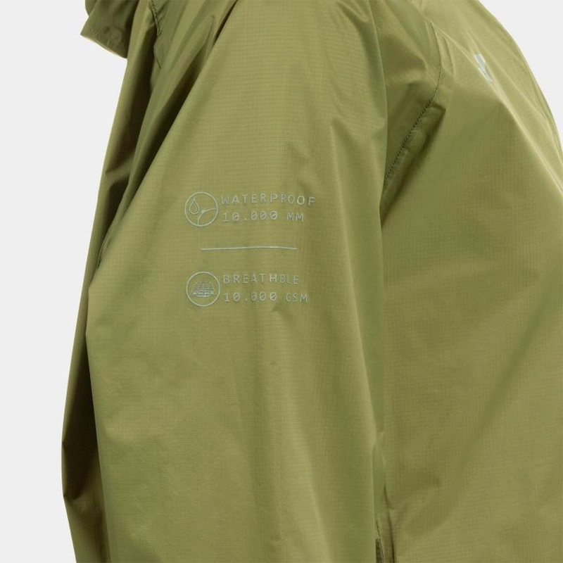 Виготовлена з надлегкої, ультрастійкої (ріпстоп) та водонепроникної тканини, яка відштовхує воду. Високий рівень водонепроникності (10 000 мм), стійка до тривалого, сильного дощу та сльоти, а також посилена водонепроникними швами. Вона також дихаюча 10K. Цей одяг дозволяє виводити 10 000 грамів вологи на квадратний метр протягом 24 годин.