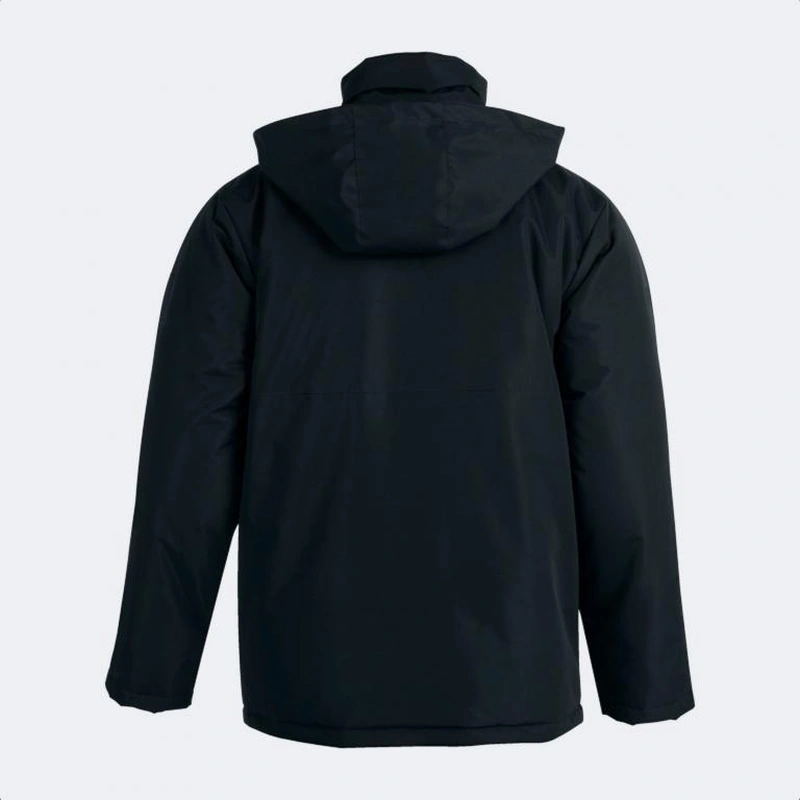 Ця куртка має повну застібку-блискавку для швидкого одягання та зняття, високий комір для захисту від холоду та прихований капюшон із шнурками для регулювання та запобігання проникненню холоду. Капюшон в свою чергу є знімним. Крім того, куртка має бічні кишені із застібкою на ґудзики, щоб ви могли безпечно зберігати дрібні речі, і додаткову внутрішню кишеню з клейкою застібкою. Виготовлена з легкої водонепроникної тканини, стійкої до тертя та падінь. Включає в себе полярну тканину всередині, яка зберігає тепло спортсмена, незважаючи на холод і вологість. Слід зазначити, що це не заважає свободі рухів, незважаючи на обсяг. У дизайні представлені невеликі вирізи контрастного кольору на плечах. Вишитий логотип Joma.