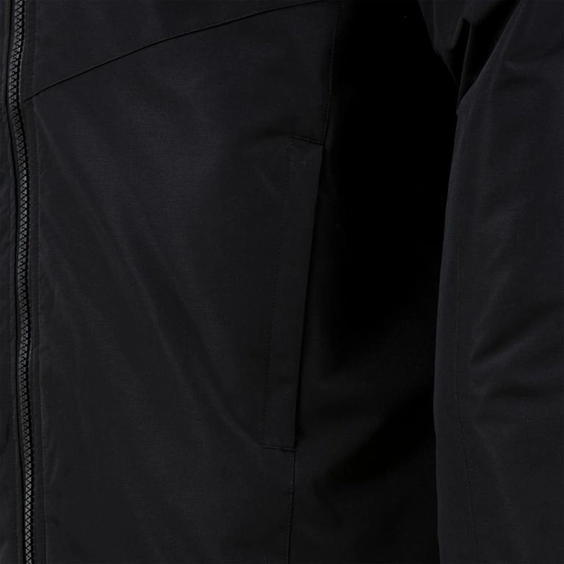 Має повну застібку на блискавку та знімний капюшон з еластичним регулюванням і застібкою на липучці. Також має ребристі манжети та зовнішні кишені на блискавці, які ідеально підходять для безпечного зберігання дрібних особистих речей.